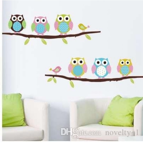 ADESIVO GALHOS COM CORUJINHAS COLORIDAS