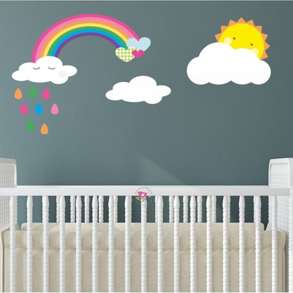 ADESIVO INFANTIL CÉU DE NUVENS E ARCO IRIS
