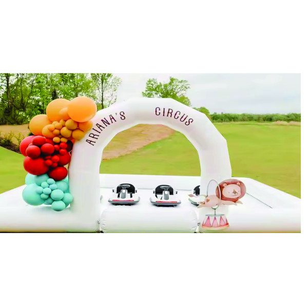 Esta pista inflável móvel oferece muito espaço para as crianças desfrutarem de uma emocionante experiência brincando com carrinhos elétricos, ou podendo encher a pista de balões coloridos e utilizar em festas e eventos de diversos segmentos
