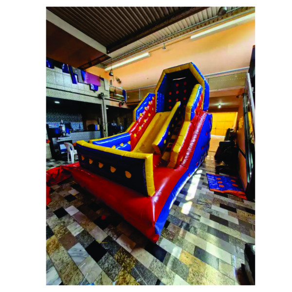 Material Resistente: Produzido em lona vinílica KP1000, com soldas reforçadas, este tobogã é feito para durar e resistir ao uso intenso.